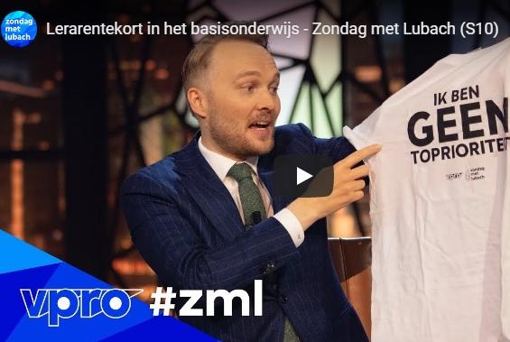 Het filmpje van Lubach is te zien via het AD dat deze week berichtte over de stormloop op T-shirts. Met de actie wil Lubach leraren die gaan staken op 6 november een hart onder de riem steken. Al tijdens het programma vertelde Lubach de shirts zelf niet te kunnen drukken. 'Zoveel shirts op zo’n korte termijn kon alleen door een leger kindslaven aan het werk te zetten', grapte Lubach.