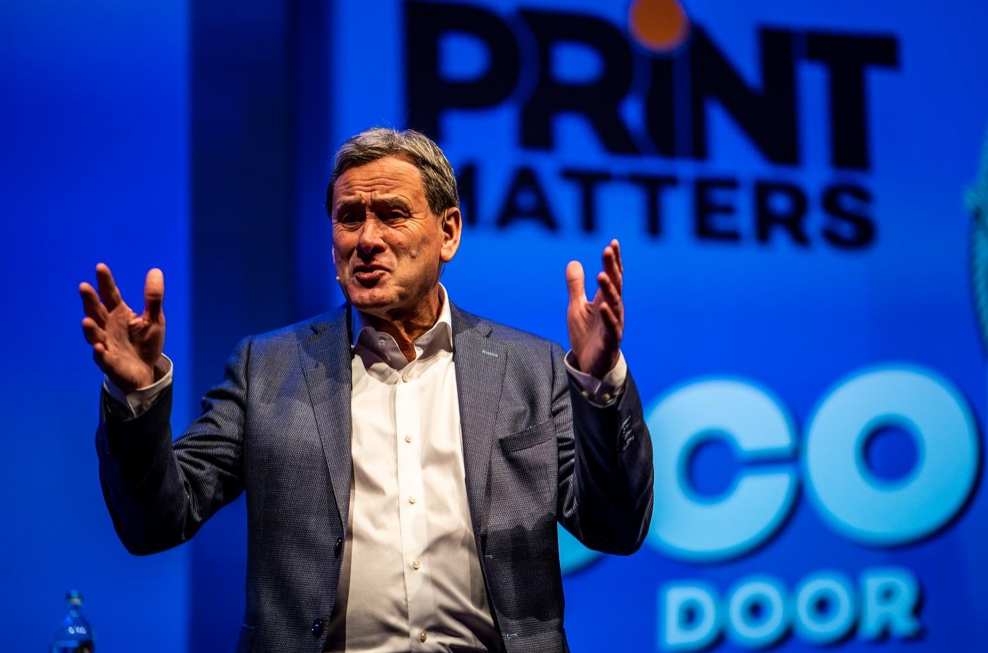 Managementspreker Jos Burgers was de uitsmijter van de Vakdag Print & Sign 2019. In een presentatie vol humor en anekdotes vertelde hij zijn publiek waarom zij moeten stoppen met boren (in dit geval drukwerk) verkopen.